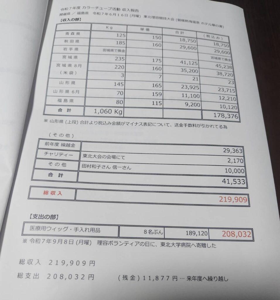 各方部が理容ボランティア、体験プログラムなど活動内容を報告しました。特筆すべきは、カラーチューブ回収活動事業に於いて8名分医療用ウイッグを東北大学へ寄贈した実績だと思います。