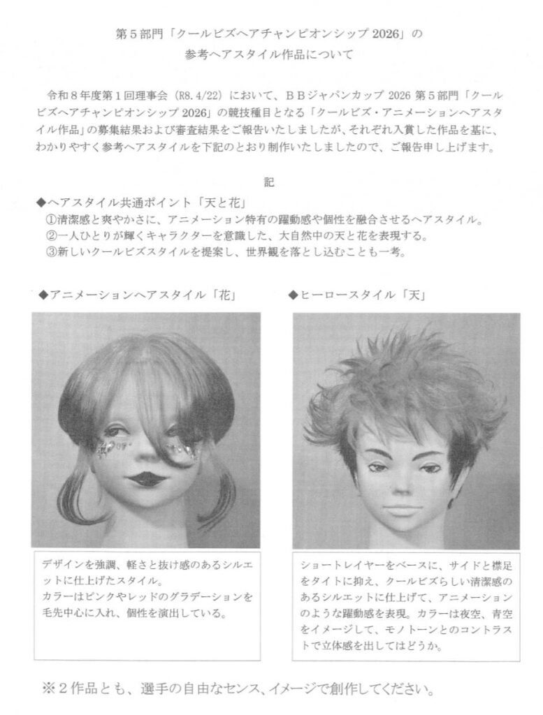 BBジャパンカッブ 2026 (第78 回全国理容競技大会)第 5部門競技の参考作品が発表されました!